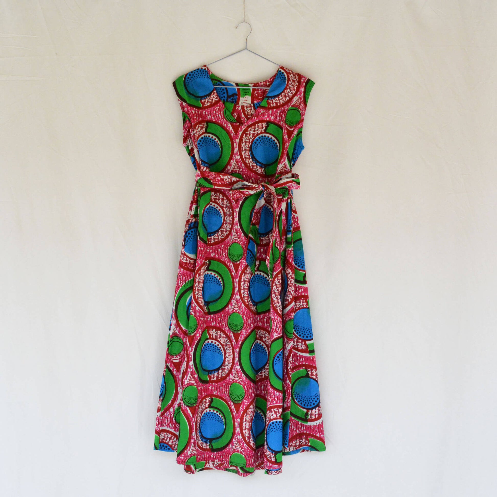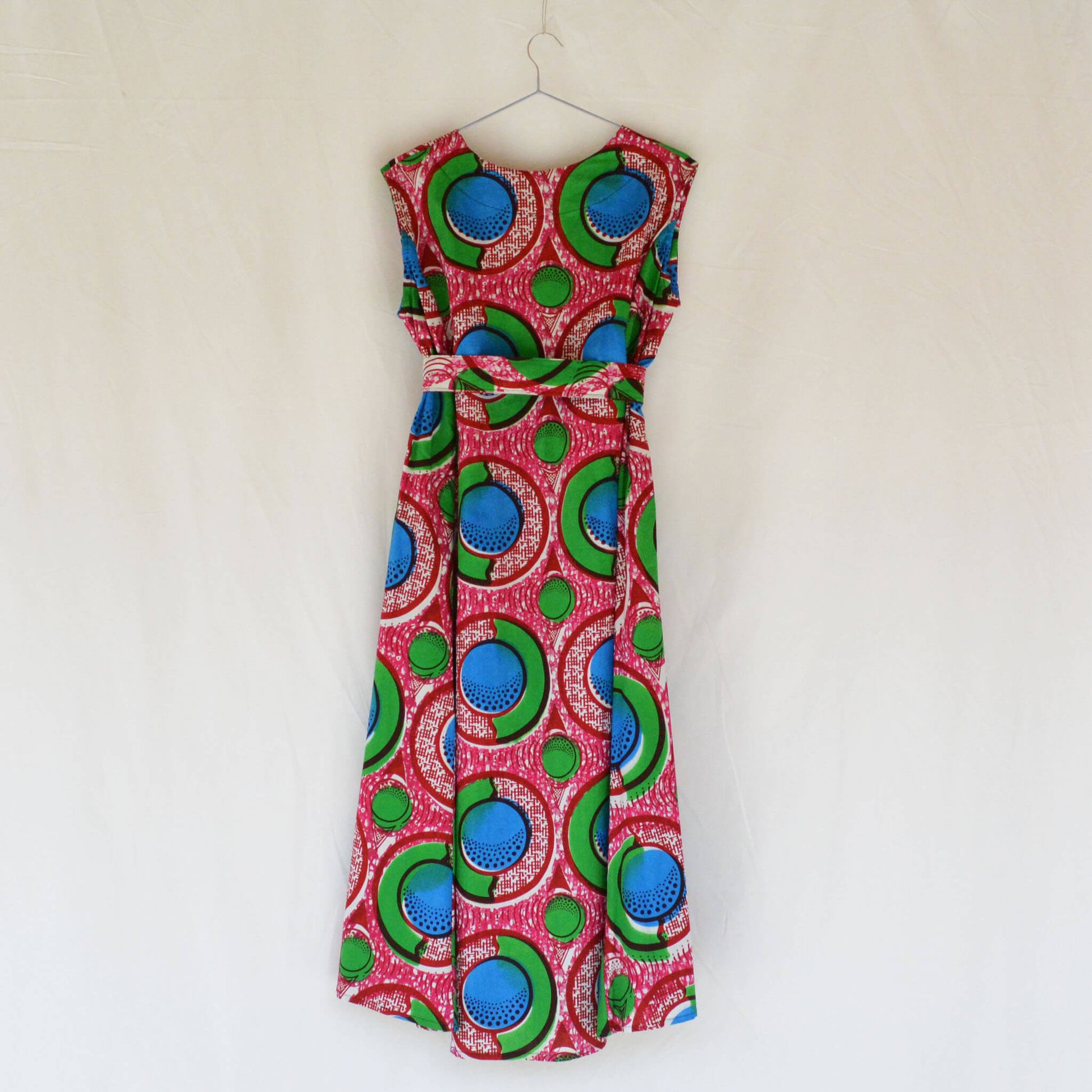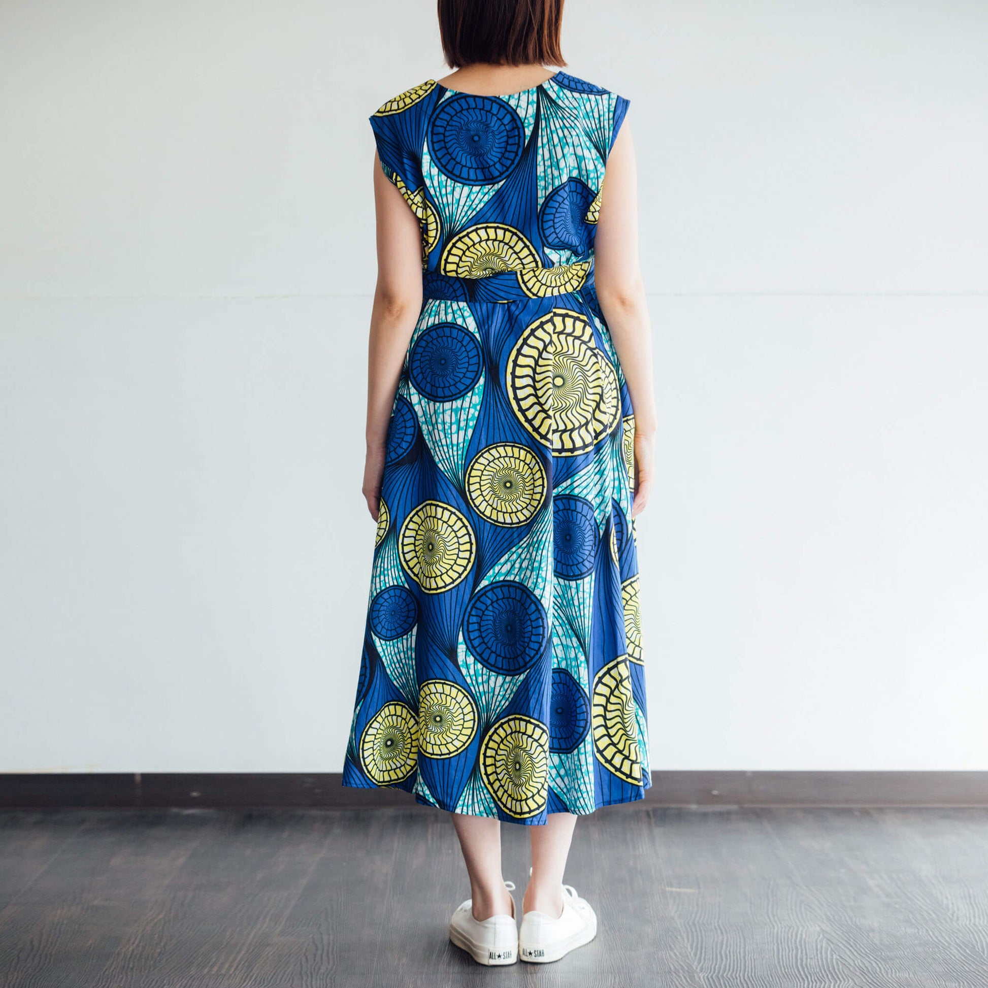 共布のリボンベルトがつき、それぞれの体型に合わせてウエストマークできます。リボンはスカーフのように首にかけたり、バッグに巻き付けたりと活用もできます。